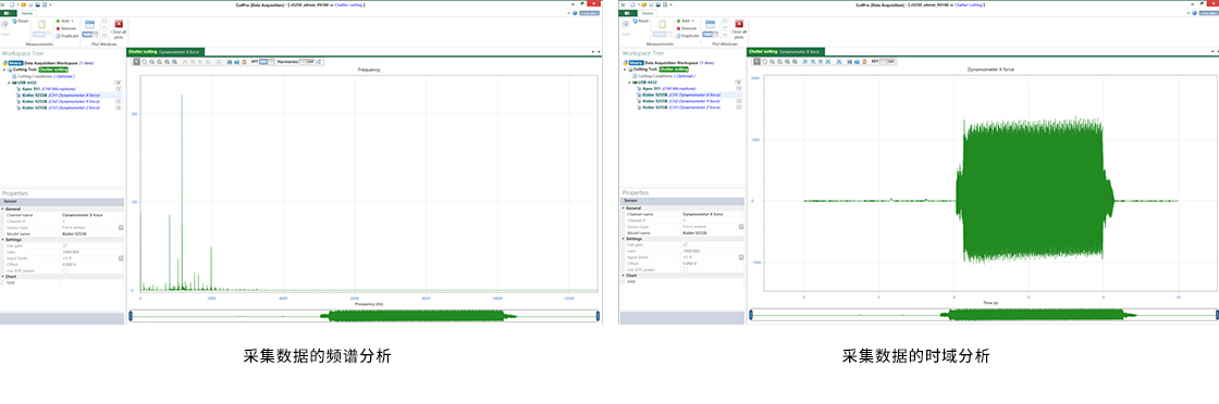 數據采集模塊為基于PC的通用數據采集和分析軟件,搭配數據采集卡使用,可以采集加工過(guò)程中的切削力、振動(dòng)、聲音及其他不同傳感信號,實(shí)現整個(gè)加工過(guò)程數據的收集,可用于加工過(guò)程診斷分析,零件及工裝振動(dòng)問(wèn)題監測排查。